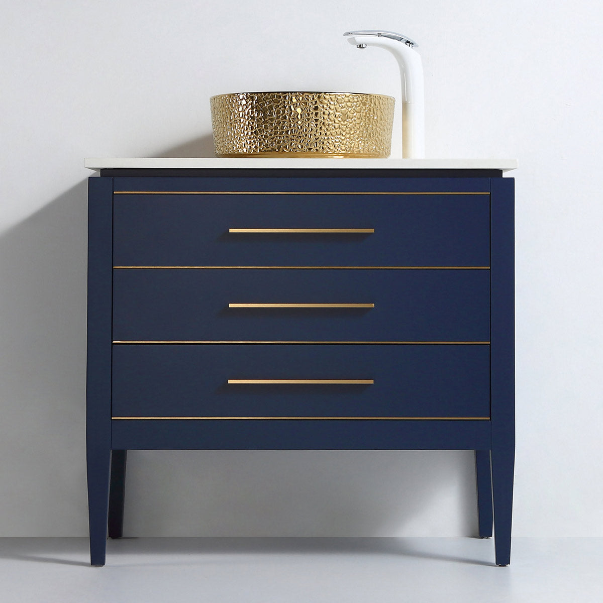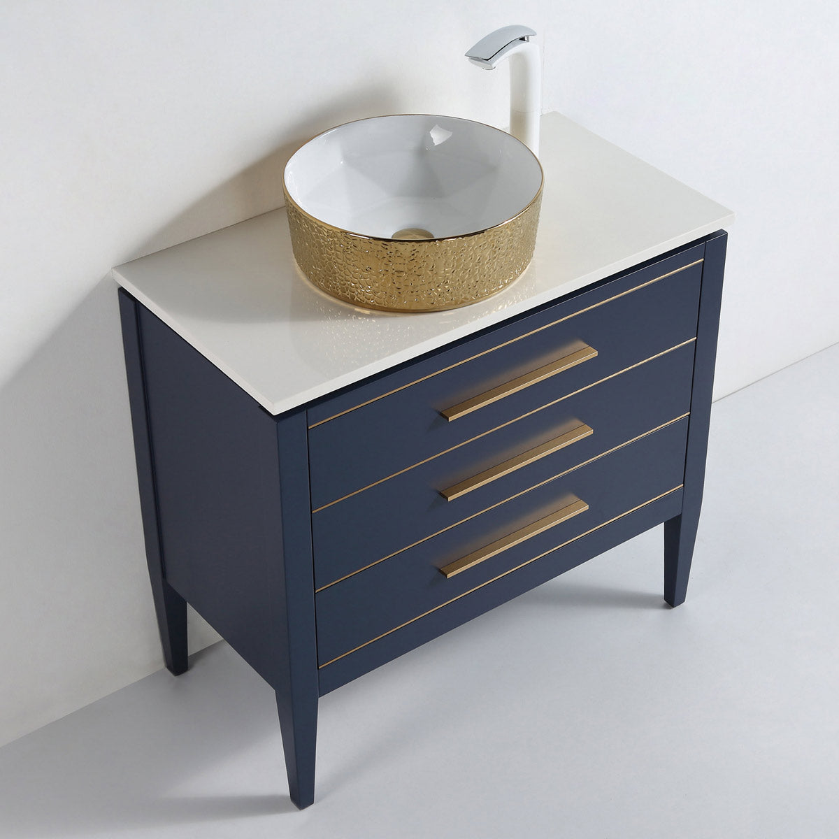 The radiant gold exterior reflects light beautifully, adding depth and dimension to your bathroom design. Pair it with marble countertops, matte black or brushed brass faucets, or Tile Vanity's signature vanities for a look that’s unforgettable.