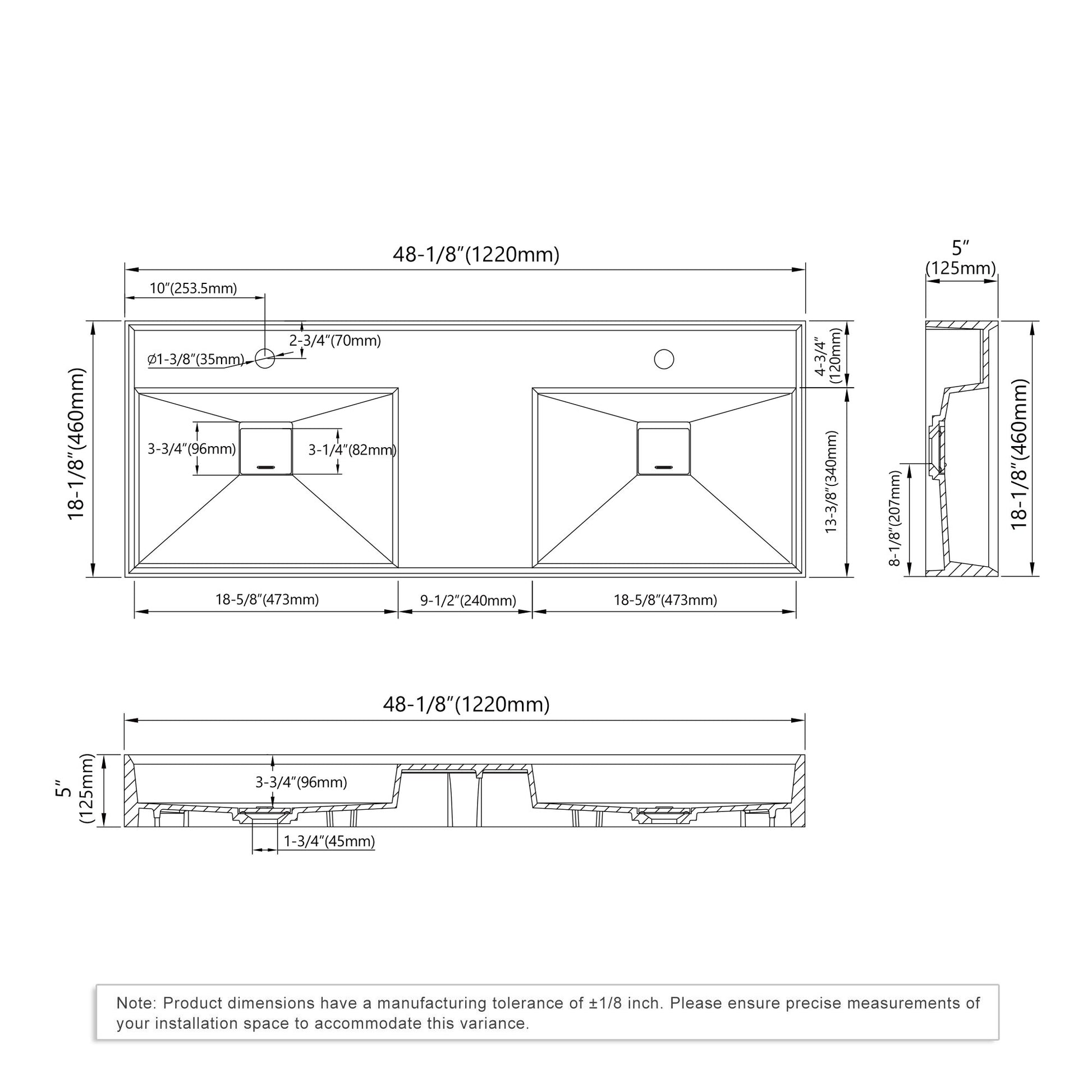 Faucet Hole: 2-3/4" (70 mm) (1-hole installation per basin)