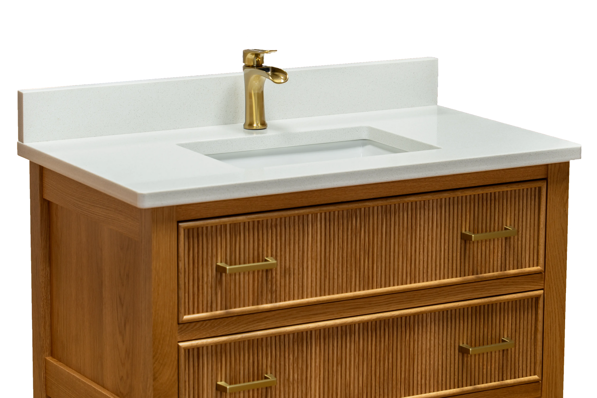 The combination of vertical fluted detailing, natural White Oak grain, and a warm S-2 stain finish makes the Belmont a true statement piece. Thoughtfully designed, beautifully crafted, and built with integrity, this vanity brings texture, warmth, and timeless sophistication to your bathroom — truly So Beautiful.
