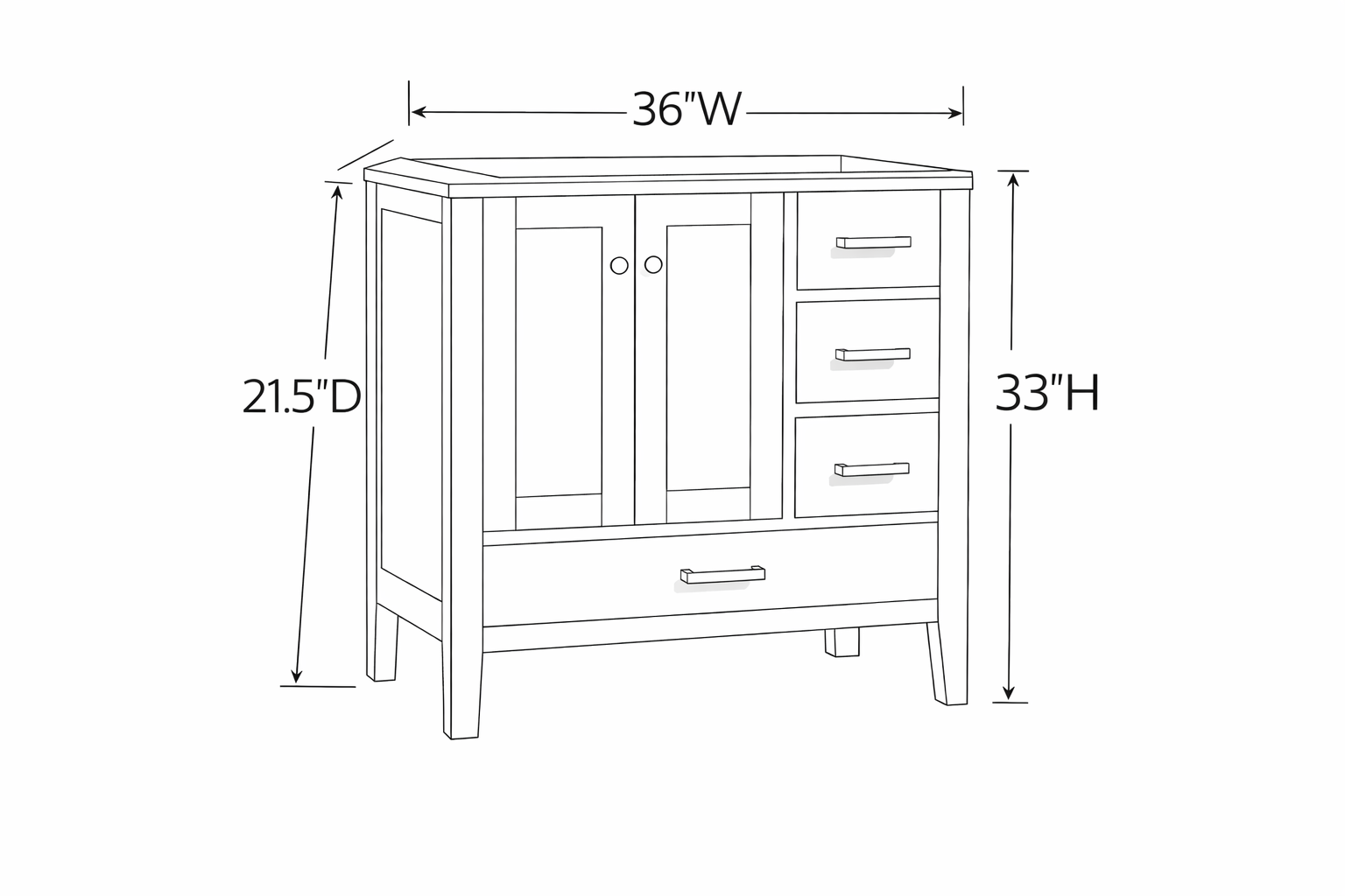 Vanity Base: 36″ W × 21-1/2″ D × 33″ H