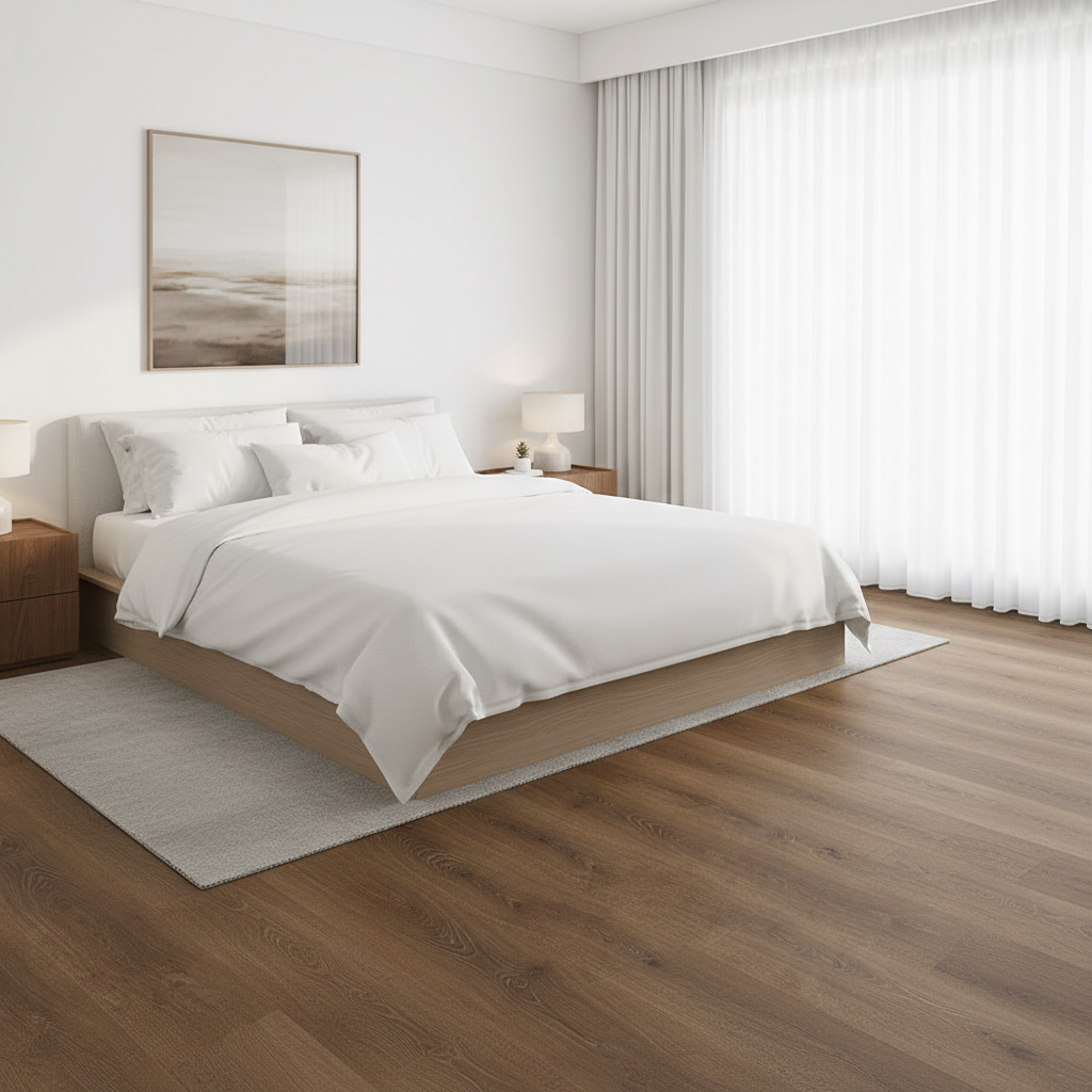 Cameron Cocoa delivers a deep, inviting interpretation of natural oak with rich brown tones layered with subtle mocha and espresso undertones. This color brings warmth and depth to interiors while maintaining a refined, modern balance. The finish feels cozy yet elevated—perfect for creating spaces that feel grounded, welcoming, and timeless.