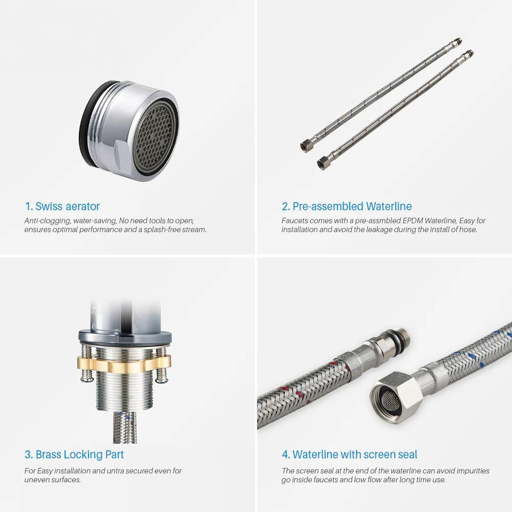 This Single Handle Lavatory Faucet brings modern simplicity and dependable engineering together in one elegant silhouette. Crafted from solid brass and finished in four luxury color options, it delivers smooth, precise control with a premium ceramic disc cartridge—built to perform beautifully for years to come.