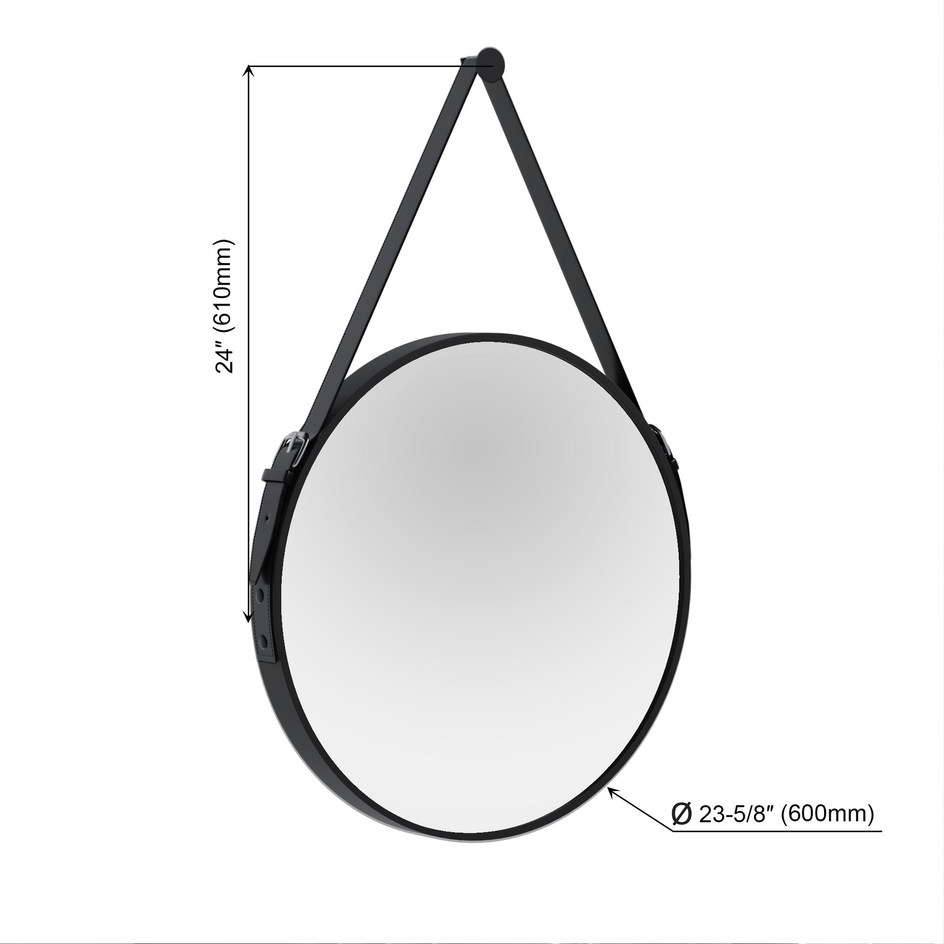 This Sia 24″ Round Hanging Wall Mirror brings sculptural elegance and modern restraint to bathrooms, vanity spaces, and entryways. Suspended by a coordinating belt strap, the round silhouette feels light, intentional, and architectural—designed to elevate the space without overwhelming it.