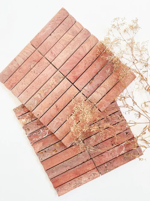 The Serene™ Travertine Cotto mosaic brings the rich warmth of natural travertine into a refined, architectural format. Featuring elongated stone pieces with softly rounded edges, this mosaic highlights the organic movement, subtle pitting, and natural variation that make travertine so enduring and desirable.